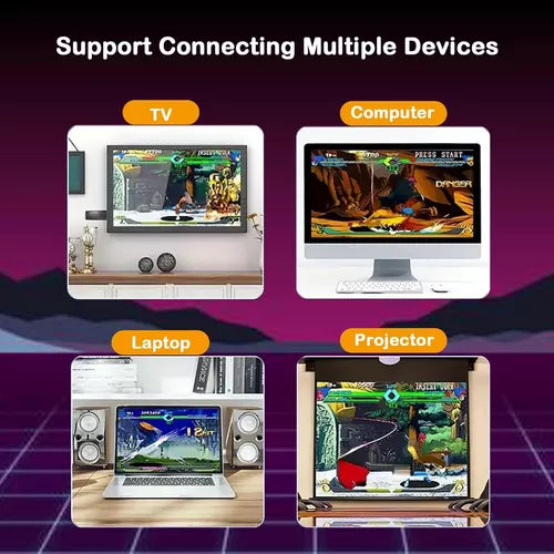 O vídeo Game retro suporta saída 4K HD para uma qualidade de imagem mais nítida. Utilize o cabo mini HDMI para conectar à sua TV e aproveitar os videogames retro na tela grande da sua televisão. Certifique-se de que sua tela tenha uma entrada HDMI.