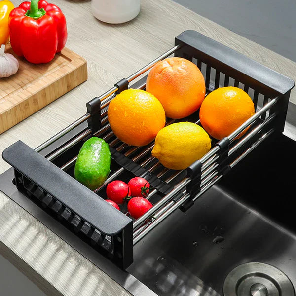 Fabricado com materiais de alta qualidade, este escorredor retrátil é resistente ao desgaste diário e garante uma limpeza sem esforço. A sua superfície fácil de limpar mantém a sua cozinha impecável e higiénica, enquanto o seu design inteligente permite-lhe poupar espaço quando não está a ser utilizado.