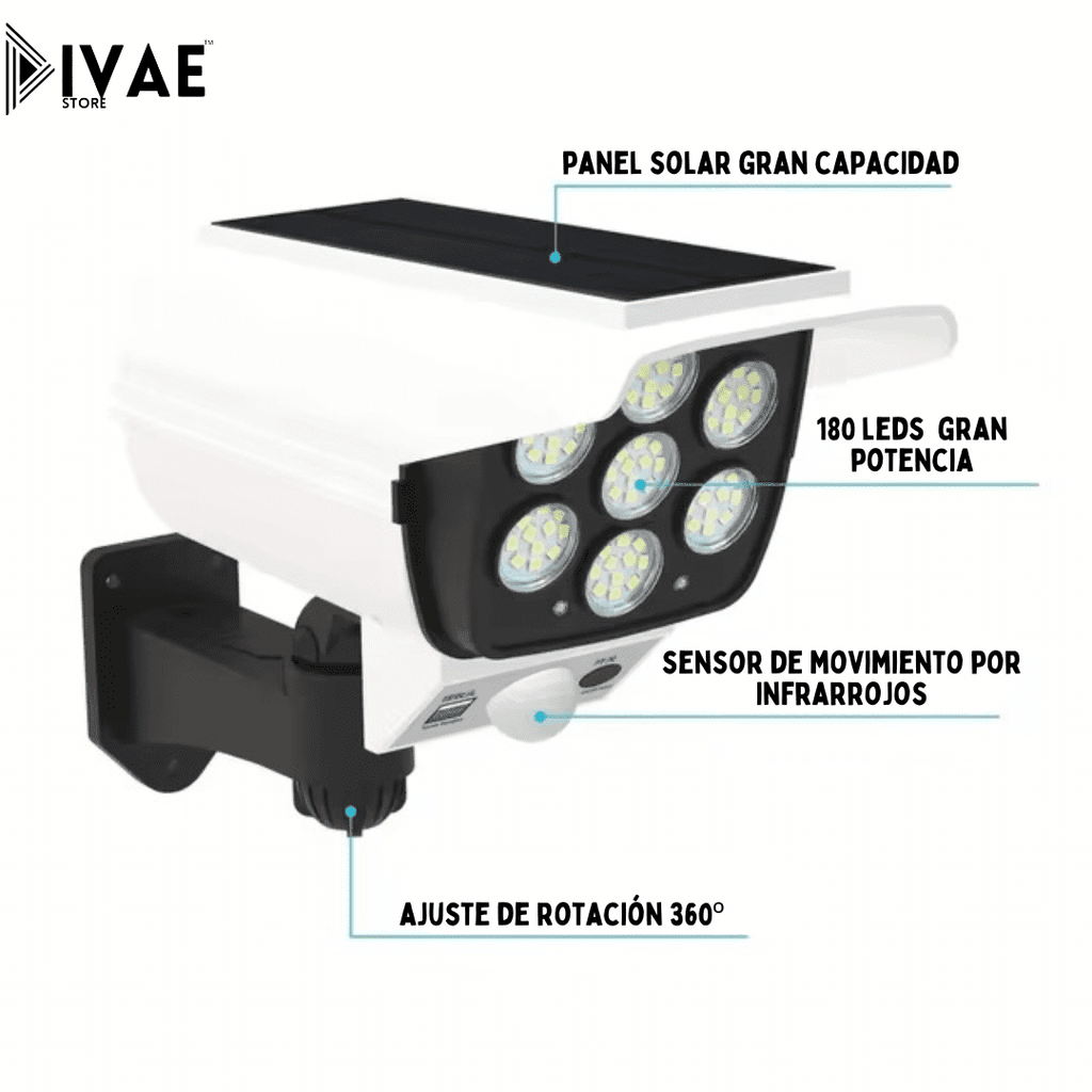 FOCO LED SOLAR COM SENSOR E DESIGN DE CÂMERA COM CONTROLE REMOTO