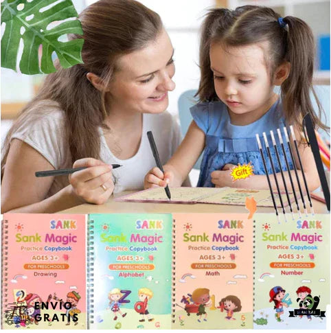 - Inclui: 4 livros: 1 alfabeto, 1 matemática, 1 números e 1 desenho, além de 1 caneta e 5 recargas mágicas para a Caneta de presente
