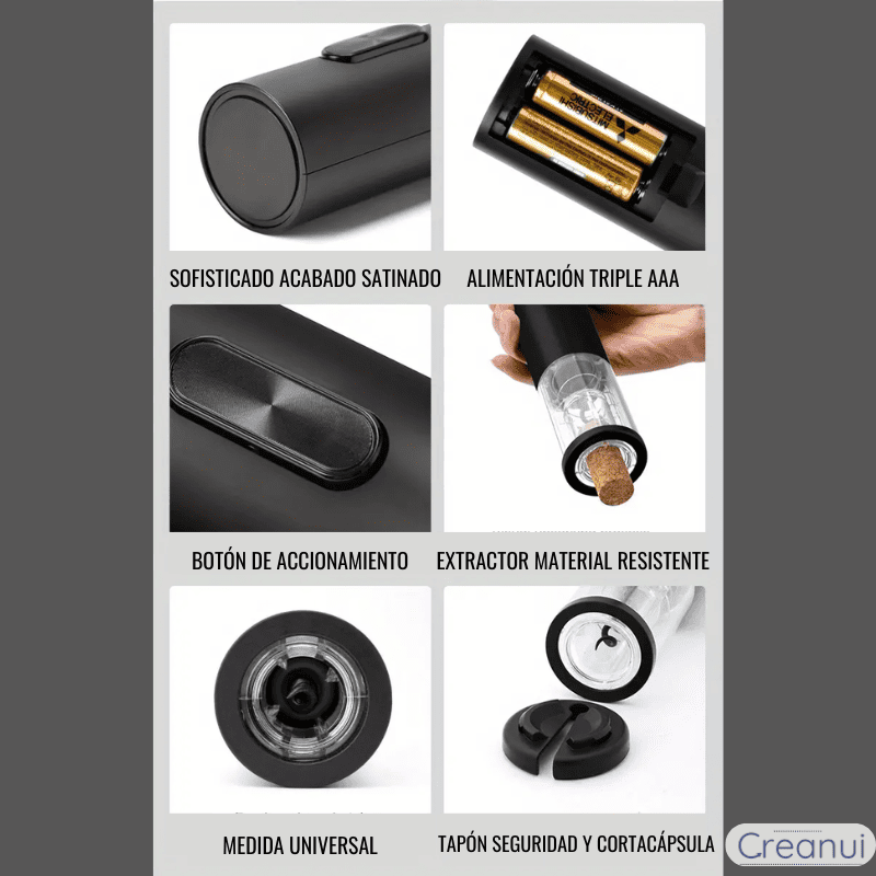 Com acabamento acetinado, design compacto e alimentado por pilhas AAA, este abridor é portátil e perfeito para levar a qualquer jantar e desfrutar ao máximo.