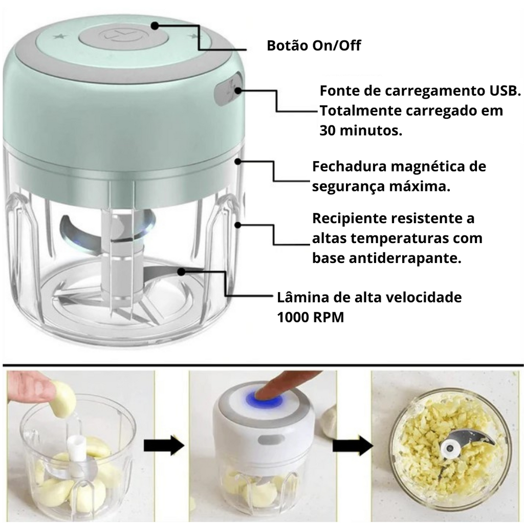 Este aparelho é perfeito quando quer fazer actividades fora de casa e precisa de cortar, processar ou misturar rápida e eficientemente, pode cortar temperos, carnes, misturar bebidas, sumos, é mesmo ideal para comida de bebé ou se quiser ter um aparelho que o ajude todos os dias e não ocupa espaço na sua cozinha. Tornar a sua vida fácil e prática é o nosso objectivo, encomende já a sua e simplifique a sua vida!